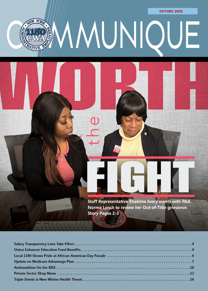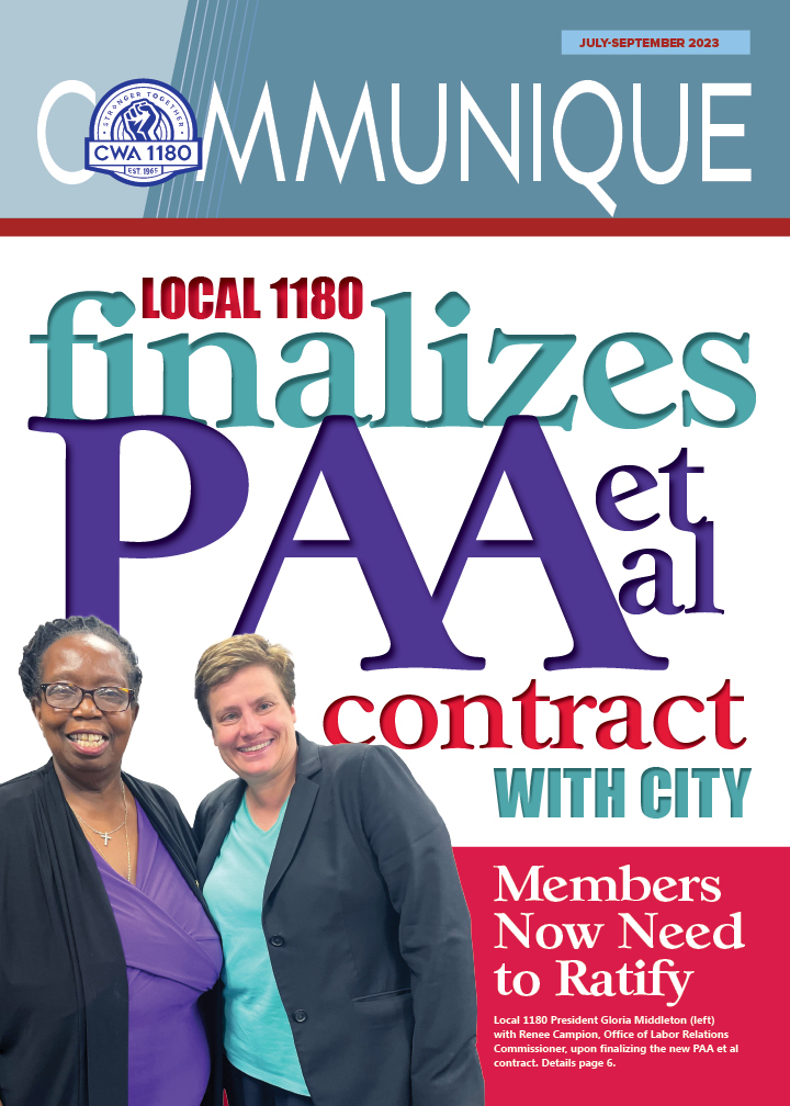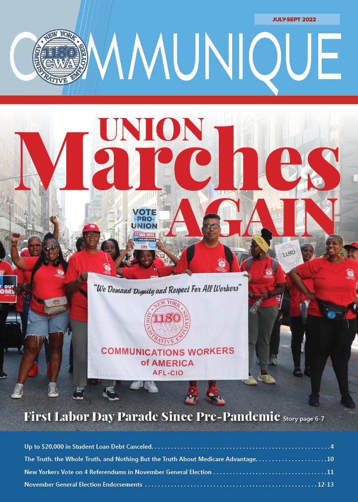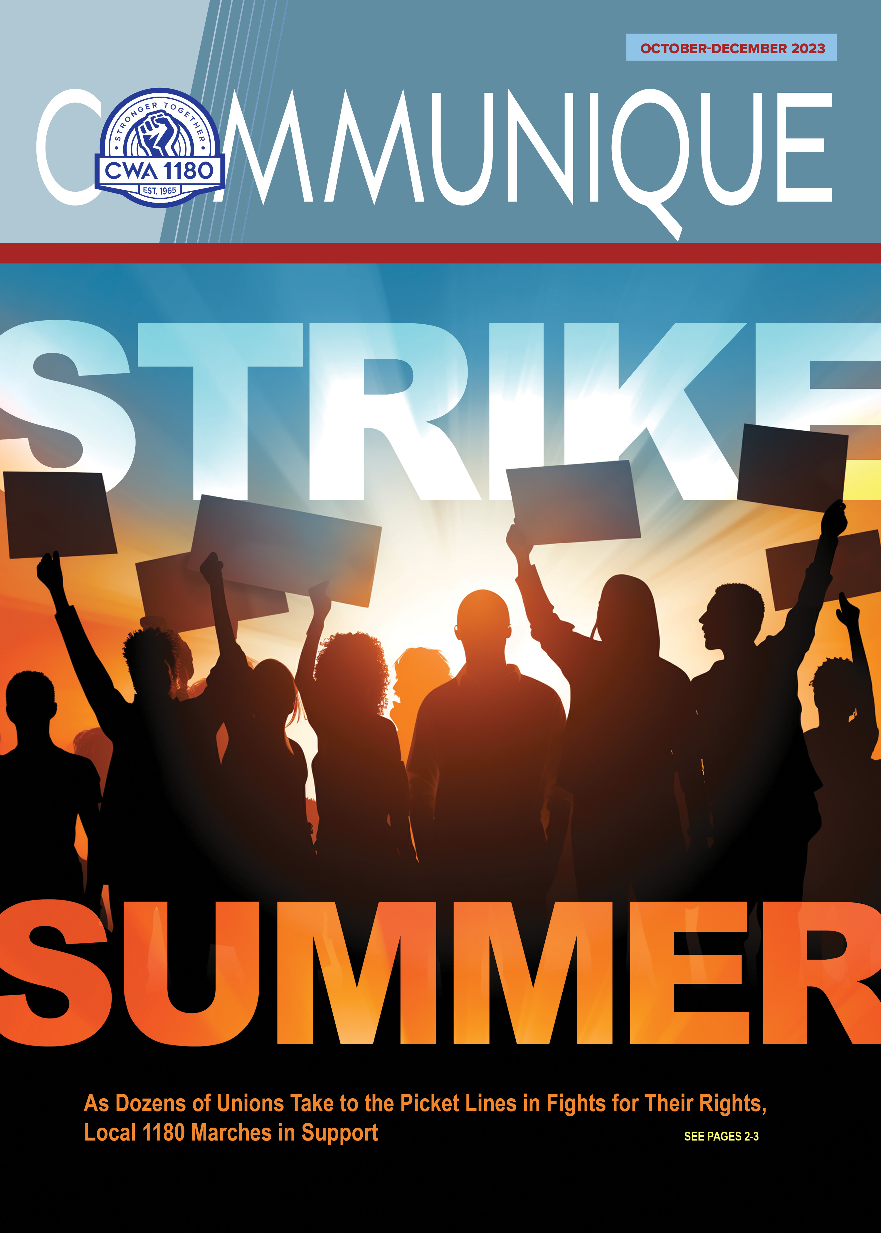 CWA Local 1180’s quarterly magazine, the Communique, has consistently garnered top awards in the Metro New York Labor Communications Council and the International Labor Communications Association contests. Competing against some of the country's best labor publications, the Communique repeatedly stands out in categories for both writing and graphic design, while Local 1180's outreach campaigns and social media programs take the highest of honors.
